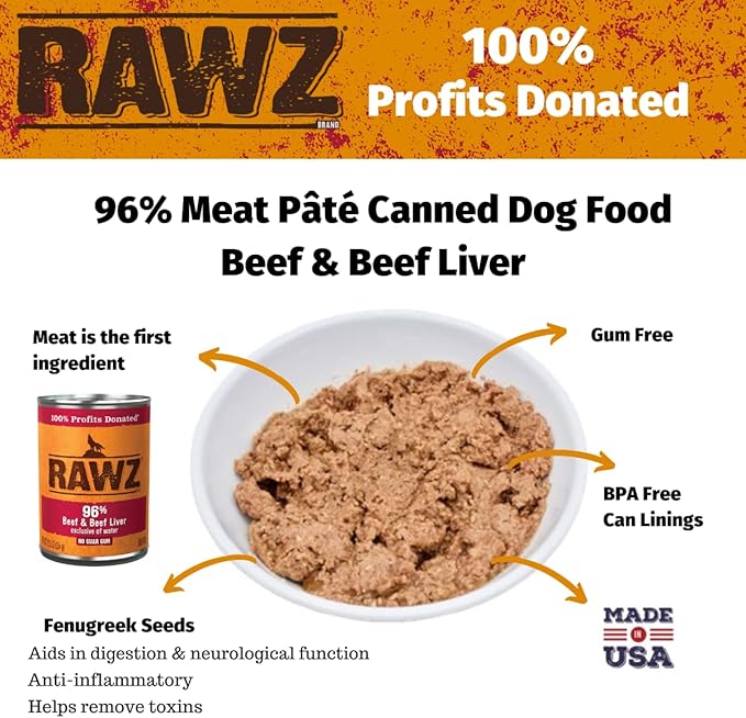 Rawz 96% Meat Canned Wet Food for Dogs 12 Pack/ 12.5 oz. Cans (Beef/Beef Liver)
