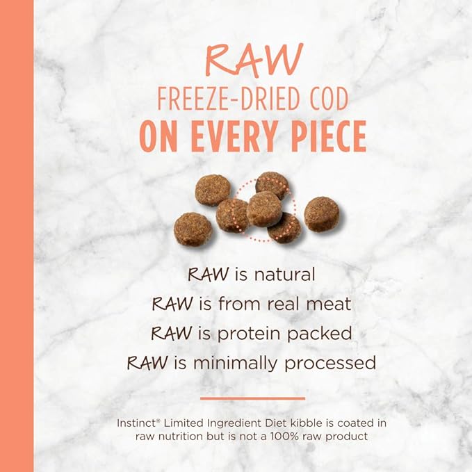 • THE FIRST RAW COATED KIBBLE: Instinct Limited Ingredient dry dog food is dry dog food where every piece of kibble is coated in freeze dried raw for nutrition and taste. Delicious, healthy flavor that small dogs to large dogs crave.
