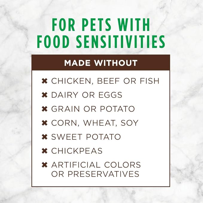 • GRAIN FREE DOG FOOD FOR DOGS WITH SENSITIVITIES: Instinct Limited Ingredient dog food is made with 1 protein & 1 vegetable. No grain, dairy, eggs, chicken, beef, fish, sweet potato, potato, chickpeas, corn, wheat, soy, artificial colors or preservatives.