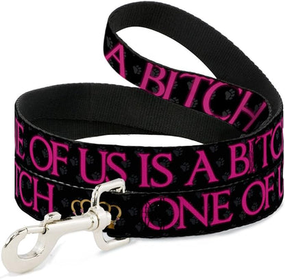 Dog Leash - ONE of US is A Bitch Crown Paws Black Gray Pink - Wide 1.5"