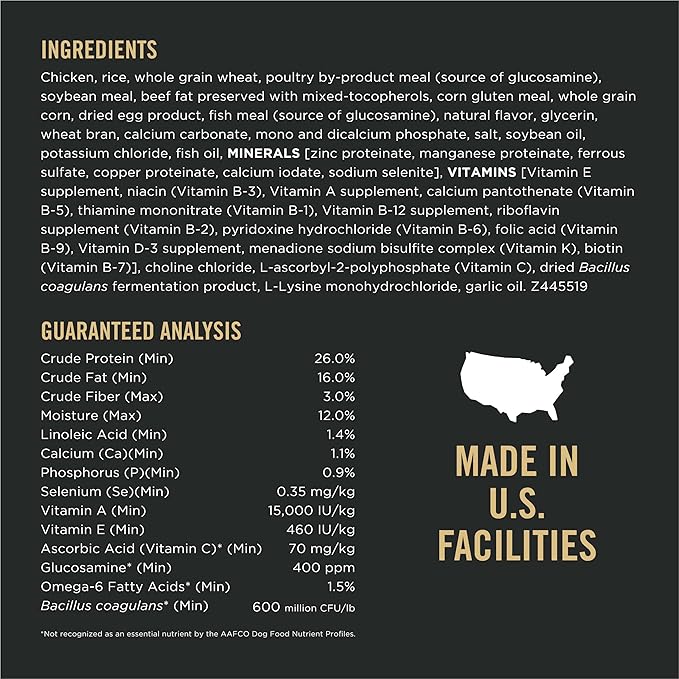 • High protein dog food dry formula, with real chicken as the first ingredient