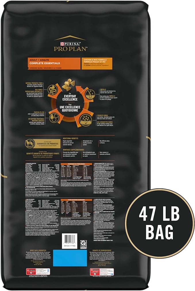 Purina Pro Plan High Protein Dog Food With Probiotics for Dogs, Shredded Blend Chicken & Rice Formula - 47 lb. Bag