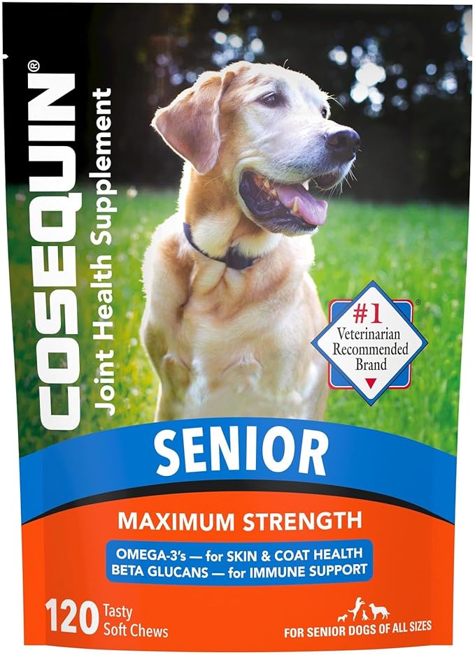 Cosequin Nutramax Senior Joint Health Supplement for Senior Dogs - with Glucosamine, Chondroitin, Omega-3 for Skin and Coat Health and Beta Glucans for Immune Support, 120 Soft Chews