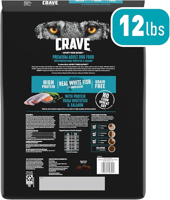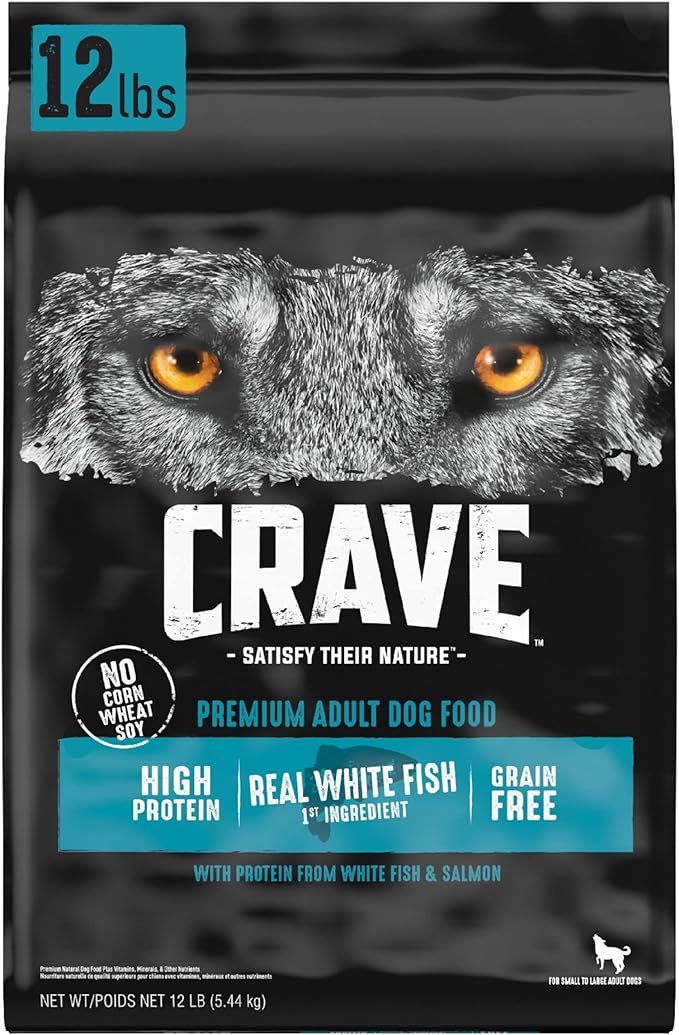 CRAVE Grain Free High Protein Adult Dry Dog Food, White Fish & Salmon, 12 lb. Bag