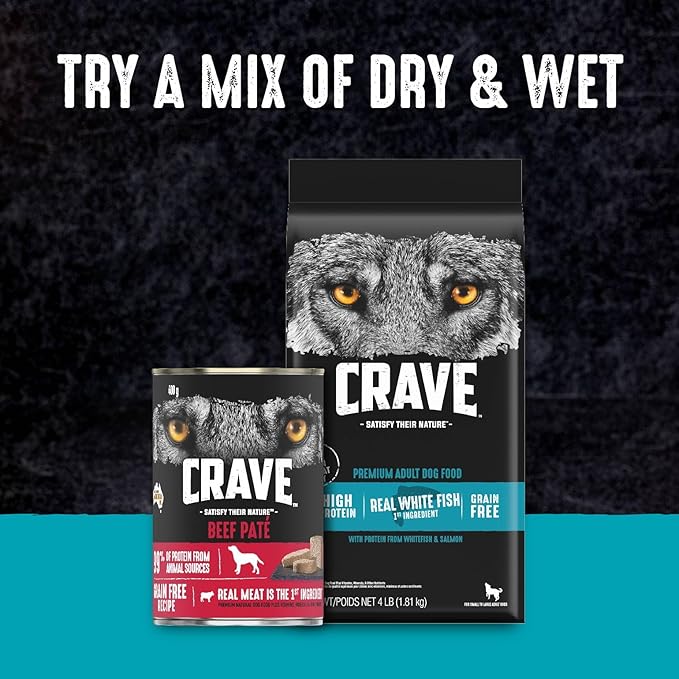 • CRAVE recipes are always crafted with real, high-quality animal protein, no grain, and the full meaty flavor that dogs go wild for