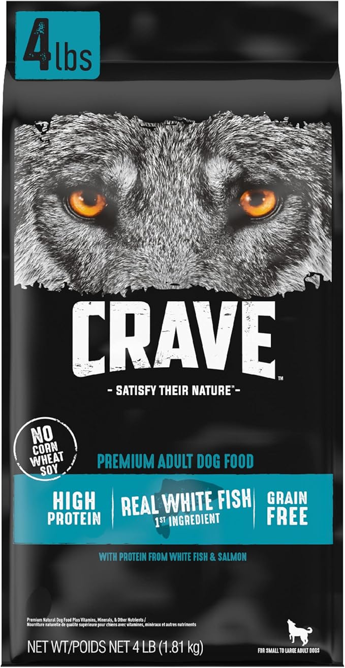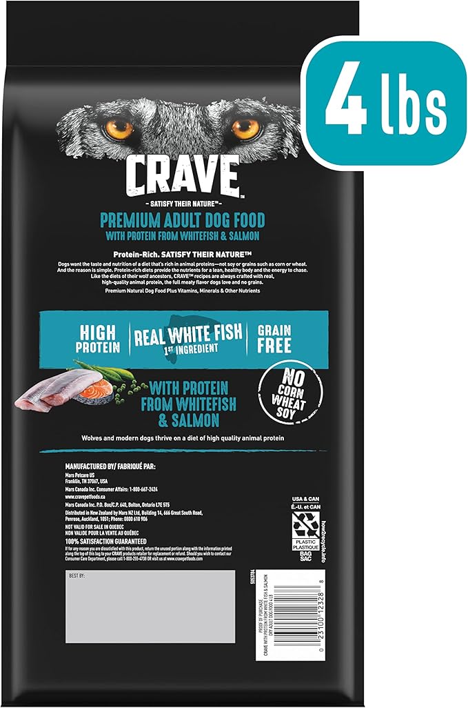 CRAVE Grain Free High Protein Adult Dry Dog Food, White Fish & Salmon, 4 lb. Bag