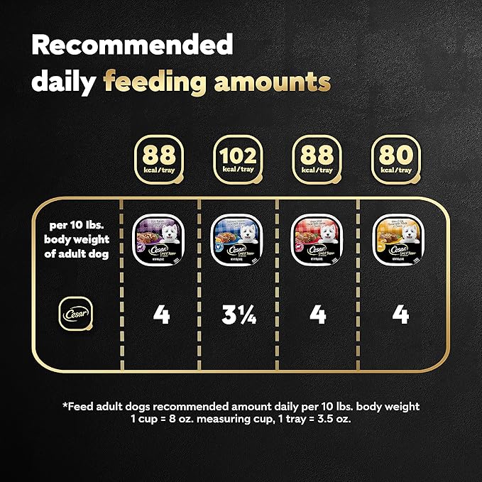 • CESAR Wet Dog Food is complete and balanced and fortified with vitamins and minerals to help dogs of all sizes, especially small breeds, stay healthy