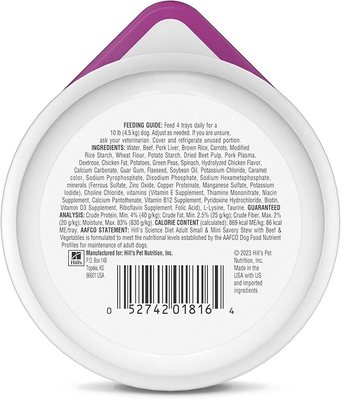 Hill's Science Diet Small & Mini, Adult 1-6, Small & Mini Breeds Premium Nutrition, Wet Dog Food, Beef & Vegetables Stew, 3.5 oz Tray, Case of 12