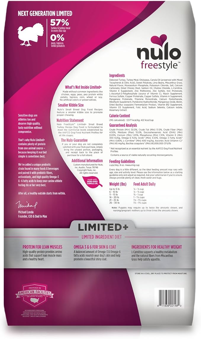Nulo Small Breed Freestyle Limited Plus Grain Free Dry Dog Food: All Natural Limited Ingredient Diet for Digestive & Immune Health - Allergy Sensitive Non GMO (Turkey Recipe - 10 lb Bag) (51LZ10)