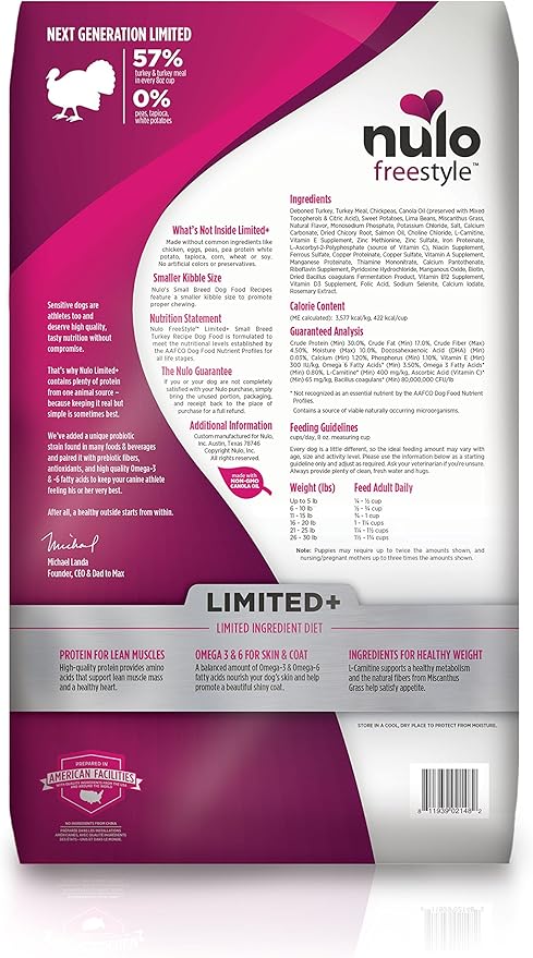 Nulo All Natural Dog Food: Freestyle Limited Plus Grain Free Puppy & Adult Small Breed Dry Dog Food - Limited Ingredient Diet for Digestive Health - Allergy Sensitive Non GMO Turkey Recipe - 4 lb Bag