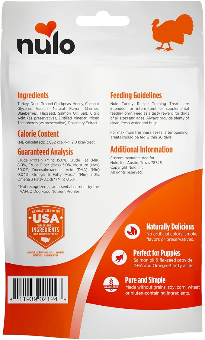 • NATURALLY DELICIOUS - Treat your pup to Nulo Trainers! Made without grains, soy, corn, wheat or gluten-containing ingredients, these training treats are great for dogs of all ages and breeds.