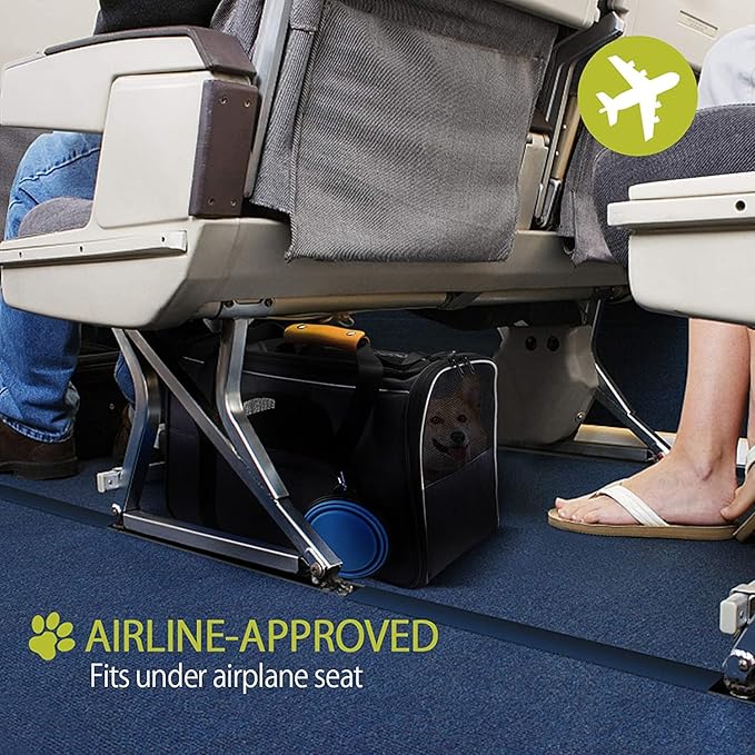 • Multiple Carrying Options, Unlimited Convenience:The size of this dog carrier can be carried on the aircraft (17.3*12.2*13.4inch / 44*31*34cm) Note: It is more comfortable for pets under 15lbs/7kg). In addition, with a removable strap and comfortable handle, it can be used as a handbag / shoulder bag/a bag placed on luggage rod, and it can also be fixed on the car seat belt, which is convenient for driving.