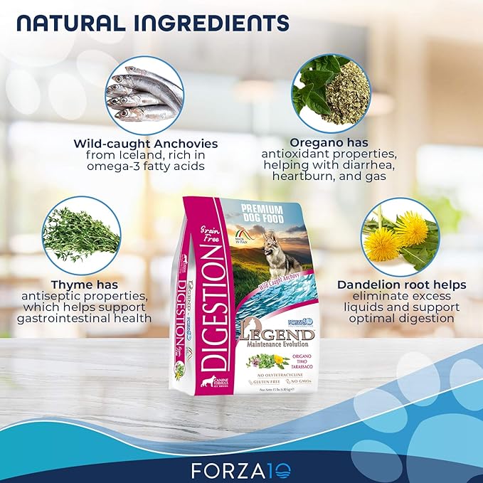 Forza10 Legend Digestion Dry Grain Free Dog Food, Sensitive Stomach Dog Food with Curative Herbs, 15 Pounds, Premium Quality Wild Caught Anchovy Flavor, for Adult Dogs, All Breeds