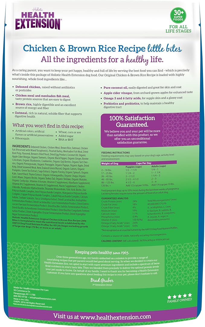 Health Extension Little Bites Dry Dog Food, Natural Food with added Vitamins & Minerals, Suitable for Teacup, Toy & Small Dogs, Chicken & Brown Rice Recipe (1 Pound / 0.4 Kg)