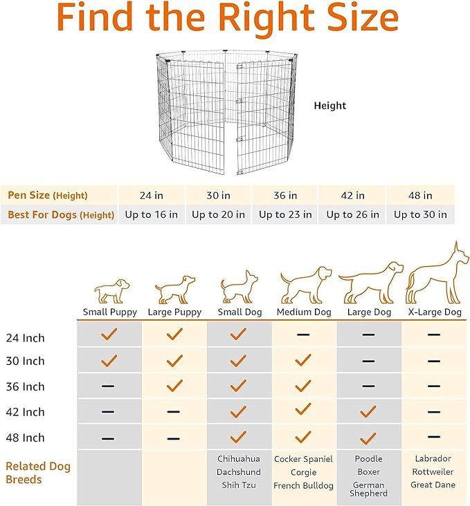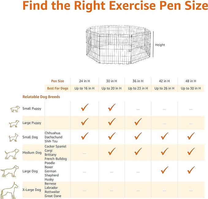 • Large 42-inch exercise play pen (no door) for dogs up to 26 inches tall or for other small pets
