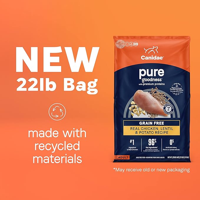 • Contains 1- 22 lb. Bag of Canidae Pure Real Chicken, Lentil and Potato Recipe, Limited Ingredient Grain Free Premium Dry Dog Food