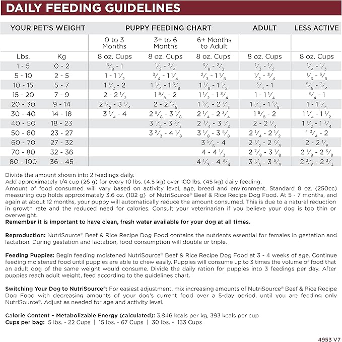 • As a member of our grain inclusive series of dog foods, NutriSource Beef & Rice Recipe is formulated to meet AAFCO guidelines for all life stages