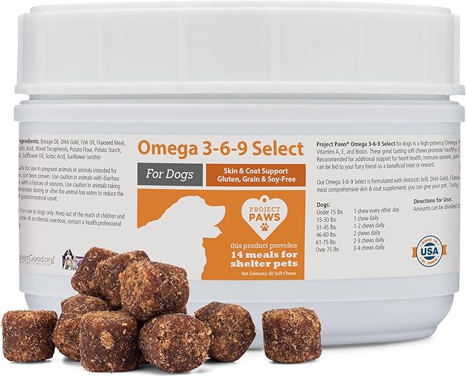 • GIVES BACK TO SHELTER ANIMALS! The Only Omega Skin and Coat Supplement for Dogs That Gives Back To Shelter Animals. Each Purchase Provides 14 Healthy Meals to Shelter Dogs.