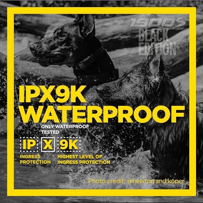 • IPX9K WATERPROOF CERTIFIED: The 1900S BLACK come with a durable receiver that is IPX9K waterproof certified, which means it has passed the International Protection Marking system. Products are verified if they can withstand a close-range high-pressure liquid spray from 4 angles (pressure of 80-100 bars and a temperature of 176°F).