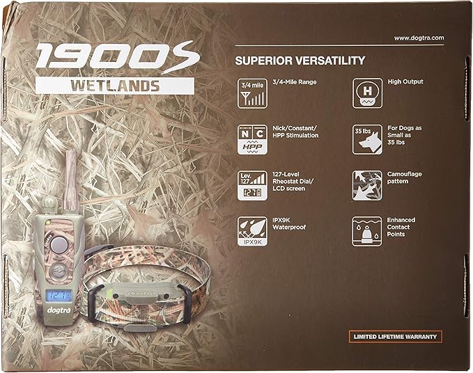 • IPX9K WATERPROOF CERTIFIED: The 1900S WETLANDS come with a durable receiver/collar that is IPX9K waterproof certified, meaning it has passed the International Protection Marking system. Products are verified if they can withstand a close-range high-pressure liquid spray from 4 angles (pressure of 80-100 bars and a temperature of 176°F), which makes it an ideal choice for wetland hunting dogs or any dogs that just love to be in water.