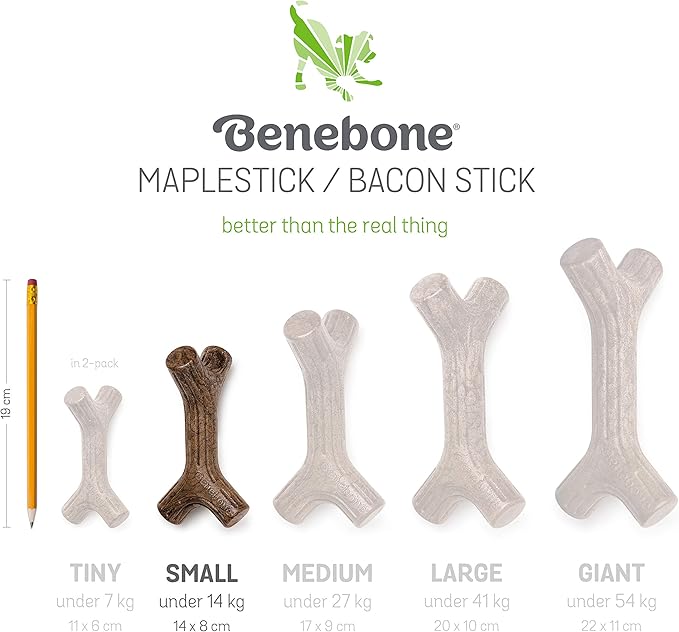Benebone Bacon Stick Real Wood Durable Dog Chew Toy, Made in USA, Small