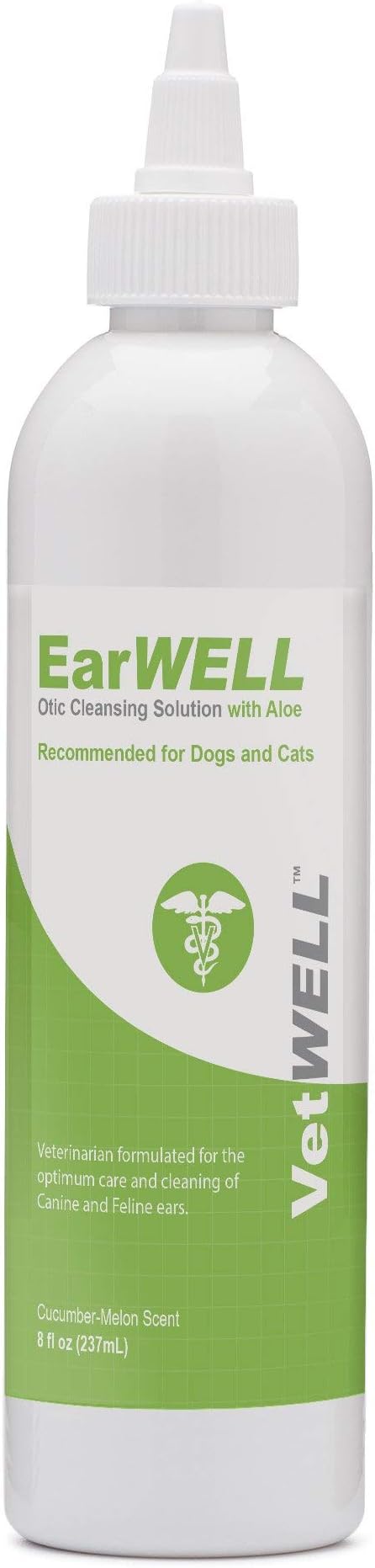 VetWELL Ear Cleaner for Dogs and Cats - Otic Rinse for Infections and Controlling Ear Infections and Odor in Pets - 8 oz (Cucumber Melon)