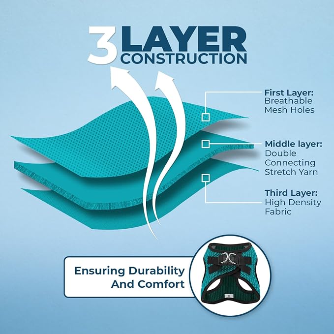 • ALL WEATHER MESH: Made with a soft, breathable air mesh, this lightweight pet harness is perfect for walks all year round.