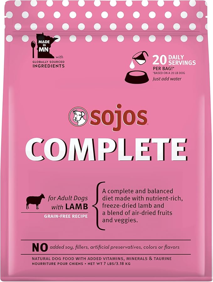 Sojos Complete Lamb Recipe Adult Grain-Free Freeze-Dried Raw Dog Food, 7 Pound Bag