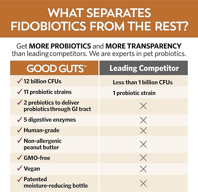 • A HEALTHY GUT SUPPORTS OVERALL HEALTH. Fidobiotics’ specific 11 probiotic strains help provide strong dog immune support, optimal dog seasonal allergy support, maintain proper nutrient absorption, and help maintain proper metabolic health.