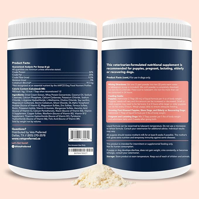 • Puppy Milk Replacement Formula Rich with essential proteins, fats, vitamins, and minerals. Perfect for puppies who are not receiving the necessary nutrition that they need at their early stage of development.