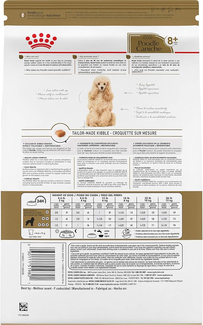 • FORMULATED FOR PUREBRED POODLES: Royal Canin Poodle Adult 8+ Dry Dog Food is designed to meet the nutritional needs of purebred senior Poodles 8 years and older