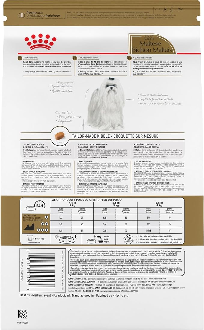 • FORMULATED FOR PUREBRED MALTESES: Royal Canin Maltese Adult Dry Dog Food is designed to meet the nutritional needs of a purebred Maltese 10 months and older
