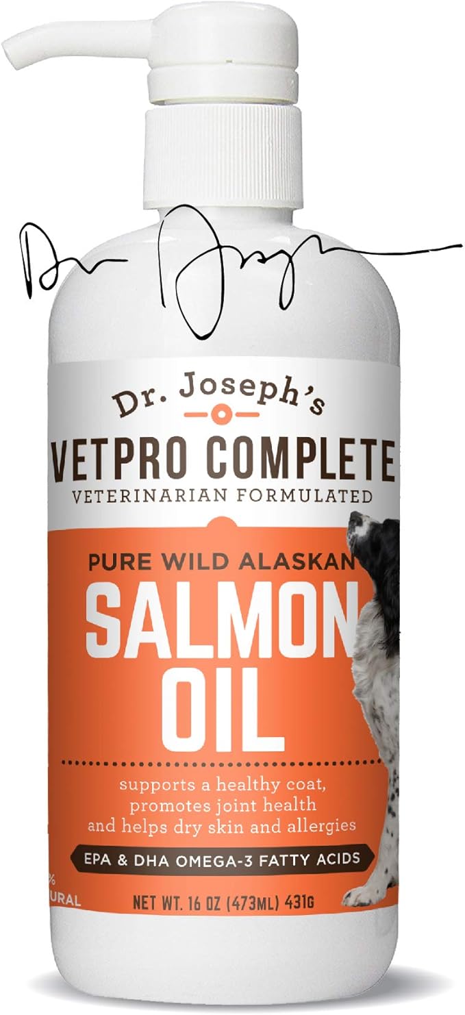 VetPro 100% Pure Wild Alaskan Salmon Oil Supplement for Dogs & Cats, 16 Ounces, Omega 3 & 6 Liquid Fish Oil, Supports Healthy Coat & Joints, Helps Dry Skin & Allergies, Add to Food