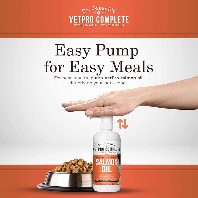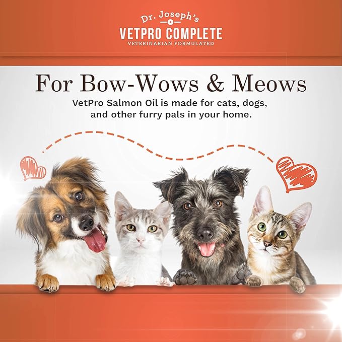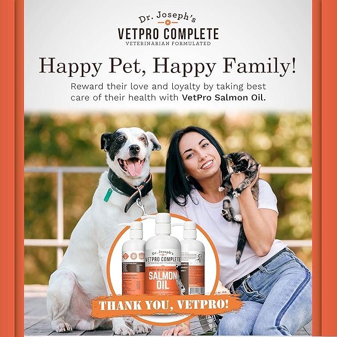 • ALL-NATURAL, MADE IN THE USA, SUSTAINABLY SOURCED – Vet Pro Complete’s unique formula contains only the highest quality Salmon Oil with no chemicals or byproducts. Each bottle is made in the USA, in a Good Manufacturing Practice (GMP) certified process.
