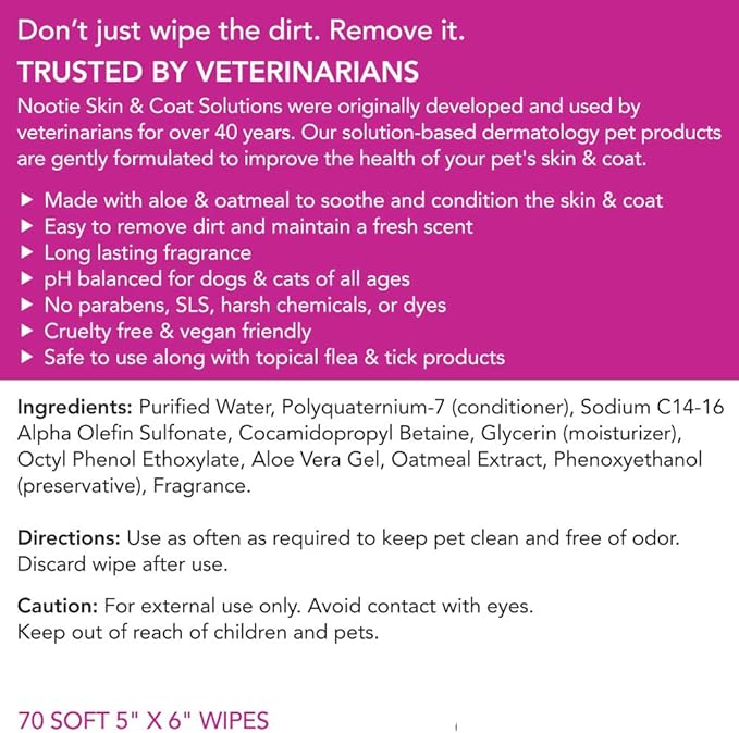 Nootie Waterless Shampoo Wipes for Dogs & Cats - Long Lasting Japanese Cherry Blossom Fragrance - Sold in Over 10,000 Vet Clinics and Pet Stores Worldwide, Made in USA - 70 Count