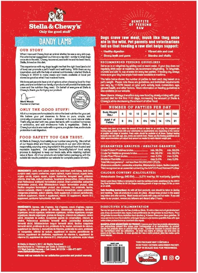 Stella & Chewy's Freeze Dried Raw Dinner Patties – Grain Free Dog Food, Protein Rich Dandy Lamb Recipe – 25 oz Bag