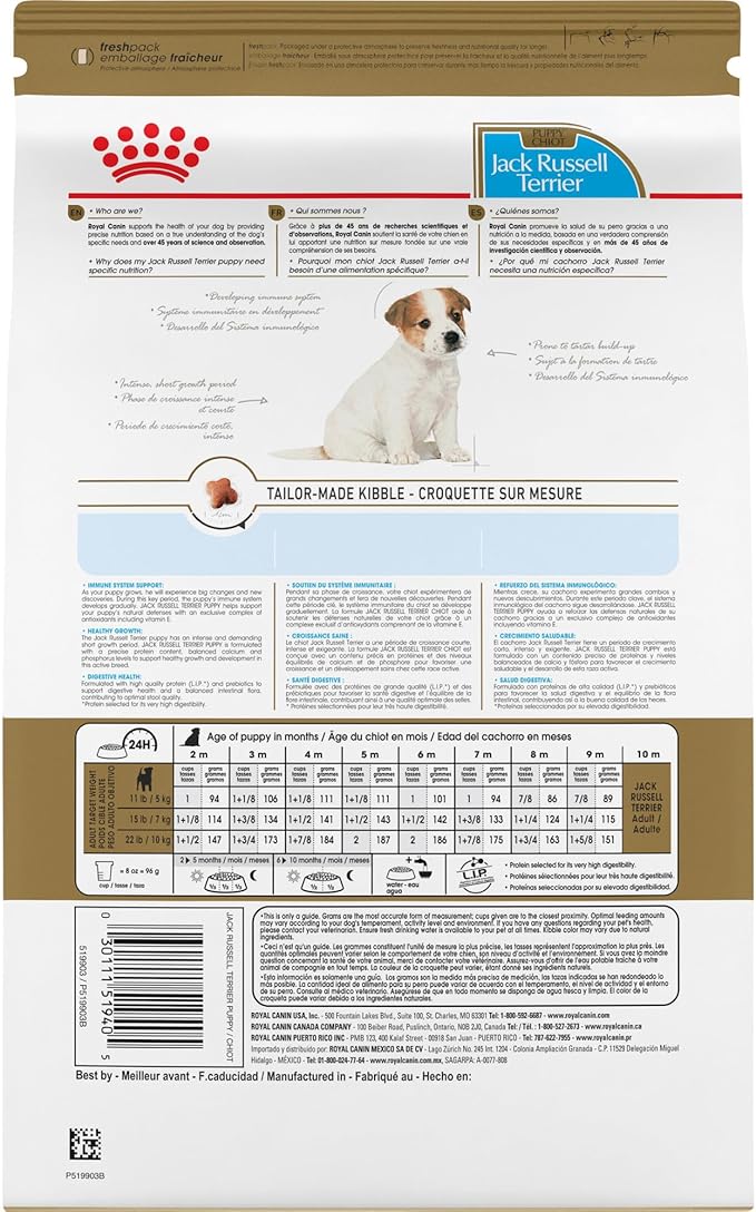 • FORMULATED FOR PUREBRED JACK RUSSELL TERRIERS: Royal Canin Jack Russell Terrier Puppy Dry Dog Food is designed to meet the nutritional needs of a purebred Jack Russell 8 weeks to 10 months old