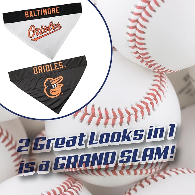 Pets First ORL-3217-L-XL MLB Baltimore Orioles Reversible Pet Bandana, Large/X-Large, MLB Team Color