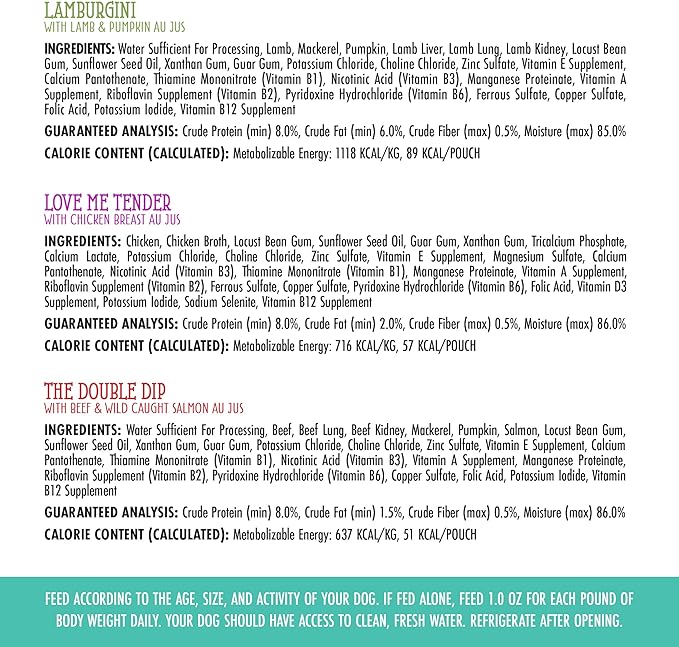 • Doggie Dinner Dance Variety Pack, 10oz Cans, Pack of 12, includes cage free chicken, wild caught salmon, grass fed beef and lamb. Sure to please even the pickiest pups