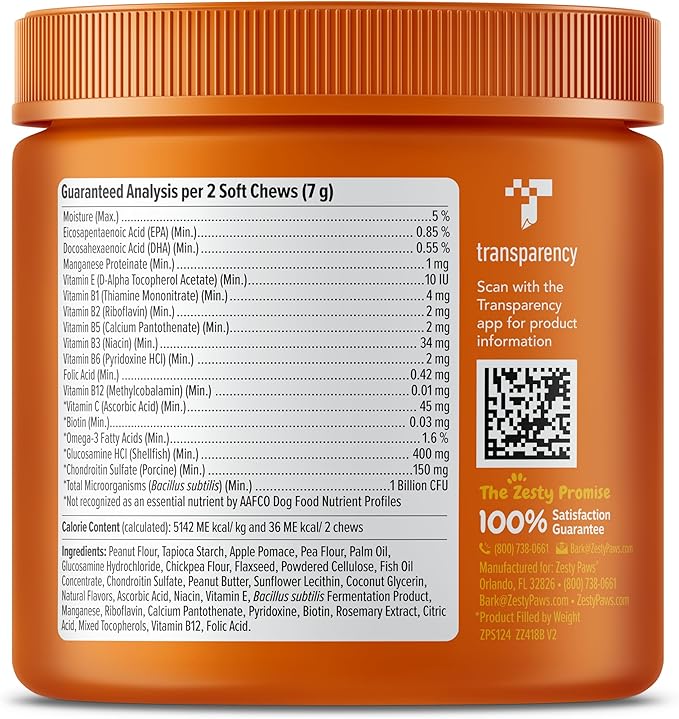 • 8-in-1 Formula - Zesty Paws Multifunctional Bites are functional supplement chews with premium ingredients that support physical performance, antioxidants, hip & joint, heart, immune, skin, liver, & gut health for dogs of all ages, breeds, and sizes.