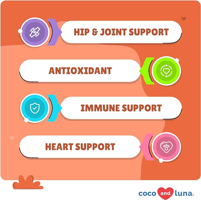 • Turmeric for Dogs - Coco and Luna Turmeric supplement contains Curcumin which is an antioxidant that supports joint, hepatic, gastrointestinal and cardiovascular health.