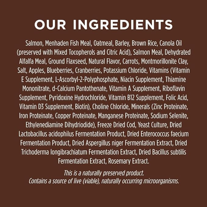 • NATURAL DOG FOOD WITH WILD CAUGHT SALMON: Instinct Be Natural Real Salmon & Brown Rice dry dog food is made with responsibly sourced animal protein as the #1 and #2 ingredients, plus whole grains, fruits & vegetables, and omegas.