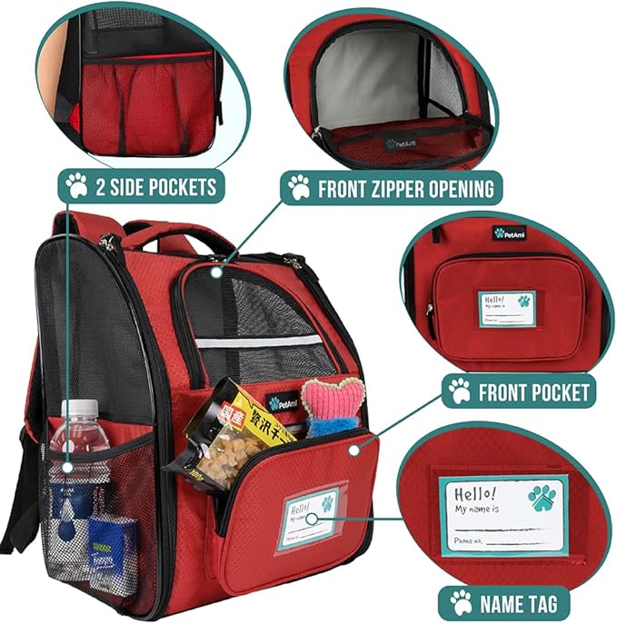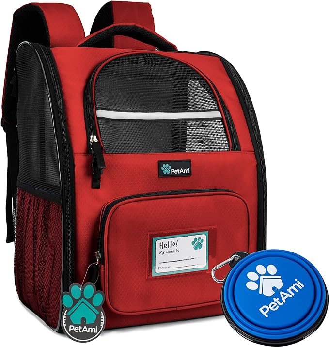 PetAmi Dog Backpack Carrier for Small Large Cat, Pet, Puppy, Ventilated Pet Hiking Backpack Travel Bag, Airline Approved Cat Backpack Carrier, Camping Biking Dog Bag Up to 18lbs Pet, Red
