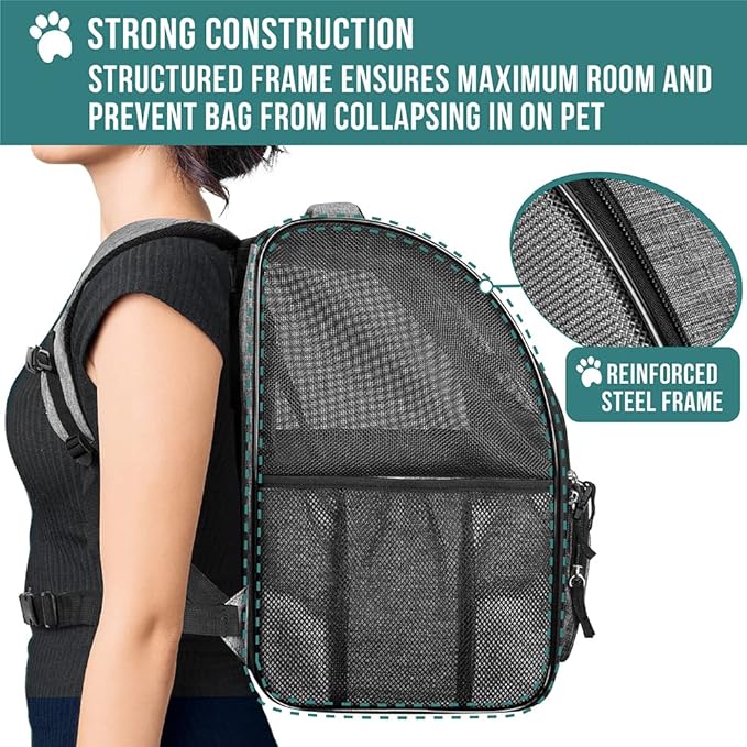 • SUPERIOR COMFORT, FIT, AND CONVENIENCE: The back and shoulder straps of the dog carrier backpack are equipped with extra thick padding for more comfort during long trips. This cat backpack comes with both waist and chest buckles to give you extra support. We also added side pouches and a front pocket to store essential pet supplies and a collapsible pet bowl to keep your pet hydrated! This airline approved cat backpack carrier is a must have essentials for dog mom, dad, owner and trainer.