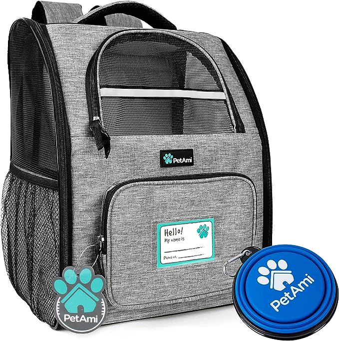 PetAmi Dog Backpack Carrier for Small Large Cat, Pet, Puppy, Ventilated Pet Hiking Backpack Travel Bag, Airline Approved Cat Backpack Carrier, Camping Biking Dog Bag Up to 18lbs Pet, Grey