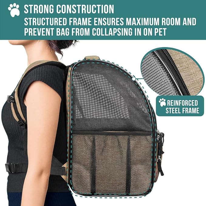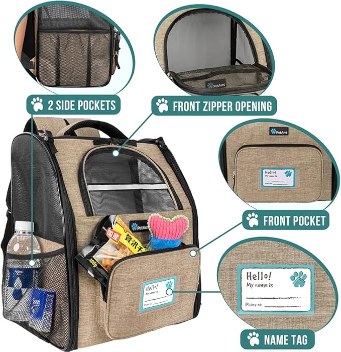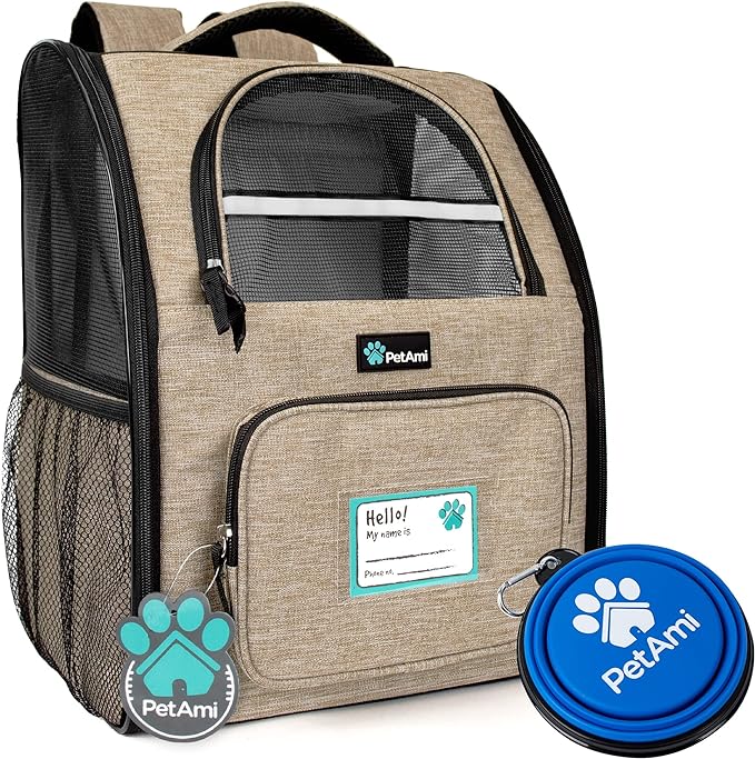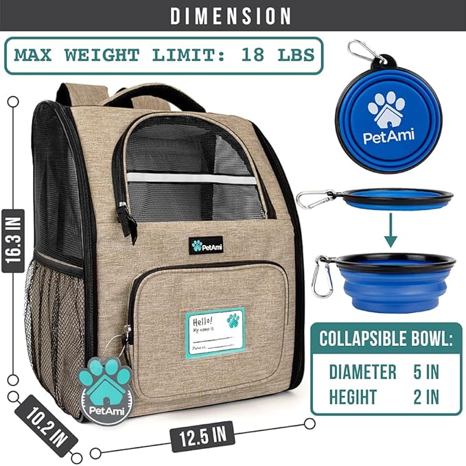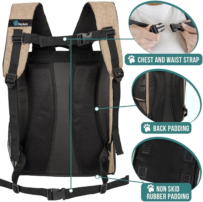 PetAmi Dog Backpack Carrier for Small Large Cat, Pet, Puppy, Ventilated Pet Hiking Backpack Travel Bag, Airline Approved Cat Backpack Carrier, Camping Biking Dog Bag Up to 18lbs Pet, Taupe