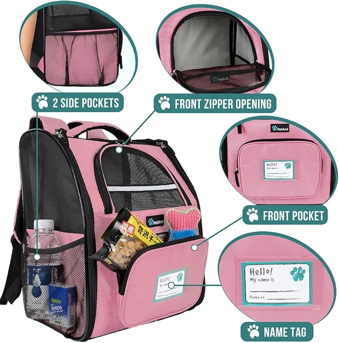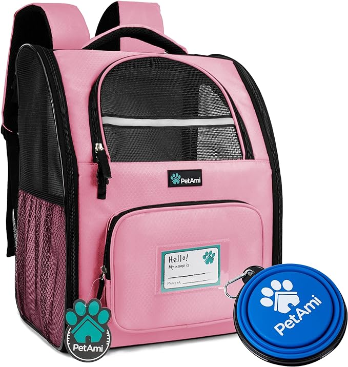 PetAmi Dog Backpack Carrier for Small Large Cat, Pet, Puppy, Ventilated Pet Hiking Backpack Travel Bag, Airline Approved Cat Backpack Carrier, Camping Biking Dog Bag Up to 18lbs Pet, Pink
