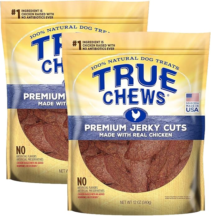 • Only the best will do for your loyal companion, which is precisely why our 100% natural Premium Jerky Cuts dog treats are made with chicken raised with no antibiotics ever. These chicken first treats contain no corn, wheat, soy, animal by-products, artificial preservatives and absolutely no artificial flavors. Just premium, tender, REAL chicken as the #1 ingredient, 100% made in the USA.
