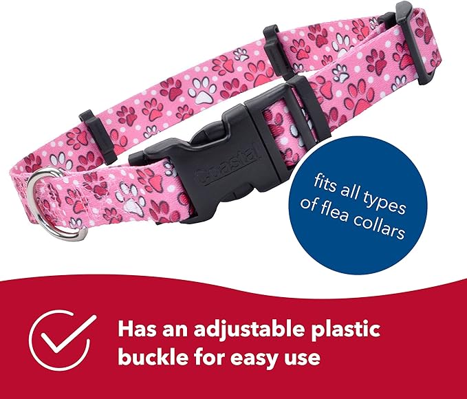 Coastal Pet SecureAway Flea Collar Protectors - Comfortable Dog Collar Accessory - Protective Flea Collar for Dogs - Adjustable Dog & Puppy Flea Collar Protection - Multi Paws, 5/8" x 10-14"