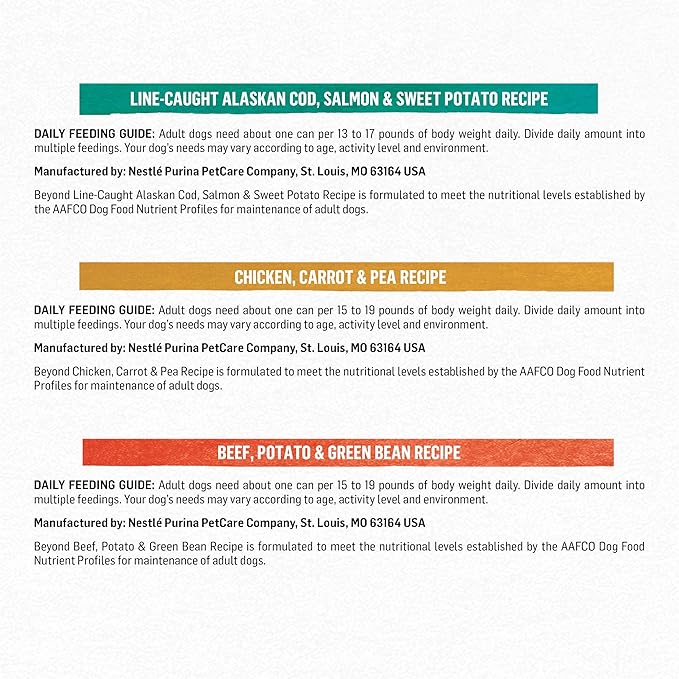 Purina Beyond Chicken, Beef and Cod Ground Entree Grain Free Wet Dog Food Variety Pack - 6 Count (Pack of 2) 13 oz. Cans